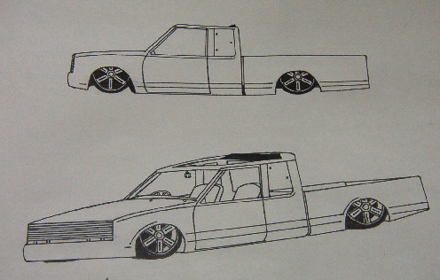 shaved everything,smooth firewall,smooth rear cab wall, 35"x35" sliding rag,suicide doors,bed molded shut, smooth bed floor, 97 chevy full-size front bumper,2000 s-10 rear bumper