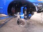 top secret but custom built, slam re82s in the rear, 4 1/2" valves, 2 viair 480s, 1 chrome 5 gallon airtank, all lift powdercoated custom blue to match.