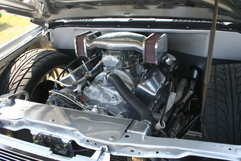 383 stroker putting out some impressive horsepower- which was reportedly 450hp/565lb-ft of torque when brandt 1st completed the project. later he upgraded from a holly carb to a demon 750 carb along with some other tweaking. engine is mated to beefed up 350t transmission with 3:73 gear ratio