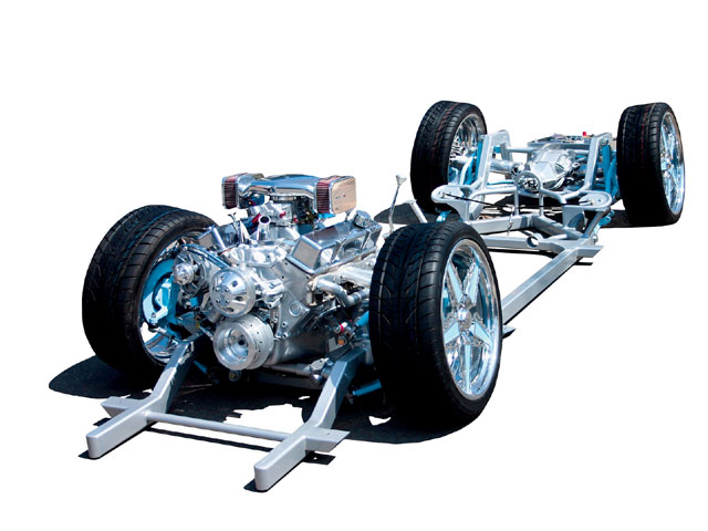 custom. airbags. shocks. scott's hotrods mustangII up front; corvette irs, shortened 5" per side in rear. mustangII control arms, spindles/springs. full custom chassis 2"x3" box & tubing. mustangII 11" two piston brakes up front; ssbc z06 13" four piston on rear.