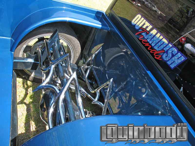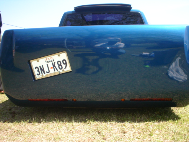 purple flame on hood w/ graphics inside, shaved emblems, hood squirters, antena, third break light, and tail lights, molded tailgate and roll pan with frenched license plate, smoothed out inside of bed w/wheel tubs, frenched license plate in front bumper, color matched handles, and slidding rag top!!!