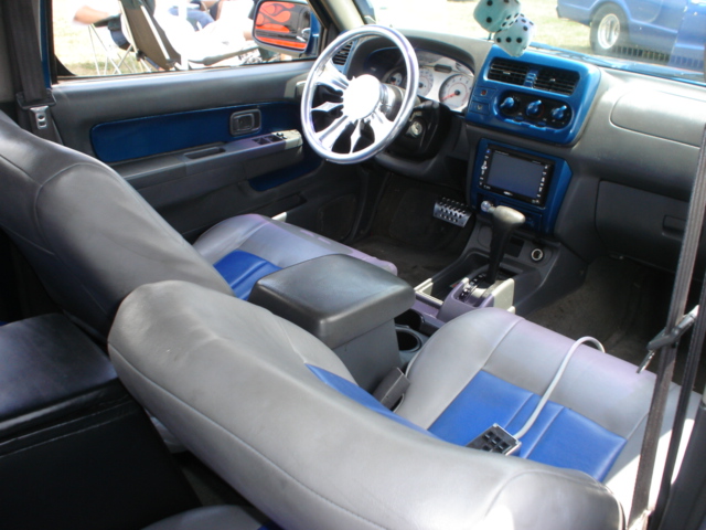 leather seats with sued inserts, painted inserts in door pannels, B.A.D. steering wheel and other billet excessories, and paited dash pieces