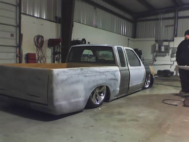 fully shaved,3 color leds in tailgate skin,bagged stock floor body drop,20 inch wheels,custom cowl hood,smooth bed floor ready for paint,04 trailblazer front end conversion