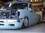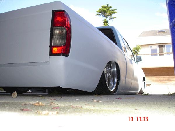 4" body drop done in two & 1/2 months. shaved handles. squirters, 3rd brake light, roof cab seem, gas tank and battery relocated under the bed, molded roll pan, frenched license box into tailgate and its rusty.