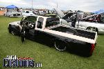 two tone paint , bodydropped , sheetmetalled bed , shaved rollpan , billet grill .