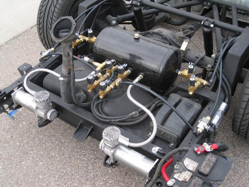 Drop spindles, 8x Ascos, 2x 480's, 5 gal tank, RE-6 (front), RE-7 (back), bags on bars, shocks at all the corners, lower arms triangulated