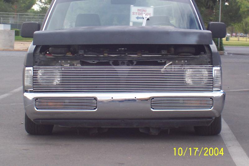 shaved tailgate and hood, checkmate flushmount tonneau cover, lexan window, chrome bumper with biller inserts, phantom grille, clear corners