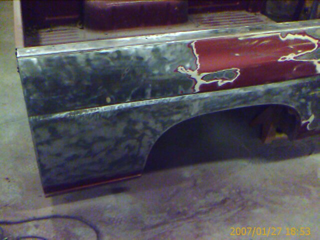 Stripping bed to see where the dents are and getting ready for paint