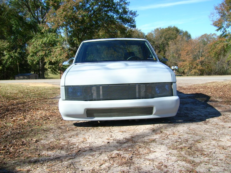 shaved toyota bumper with billet insert, phantom billet grille, H-4 headlights, shaved corner lights, shaved emblems, shaved windshield washers, shaved factory antenna replaced with frenched billet antenna, Mitsubishi Eclipse hood bubble molded onto 93-97 nissan hood, 4x4 fenders, shaved door handles, shaved roof lines, shaved tail lights, tailgate skin/roll pan combo, checkmate fiberglass bedcover.