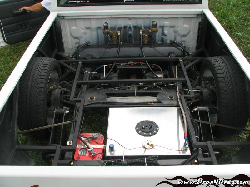 fronts bagged with slam specialties rs62s, converted to 5 lug, backhalf that holds a rx7 IRS, cantilever setup using firestone 2500s until i get some slams, 12 gal tank, 8 1/2" GC250s, 10 switches, 5/8" line