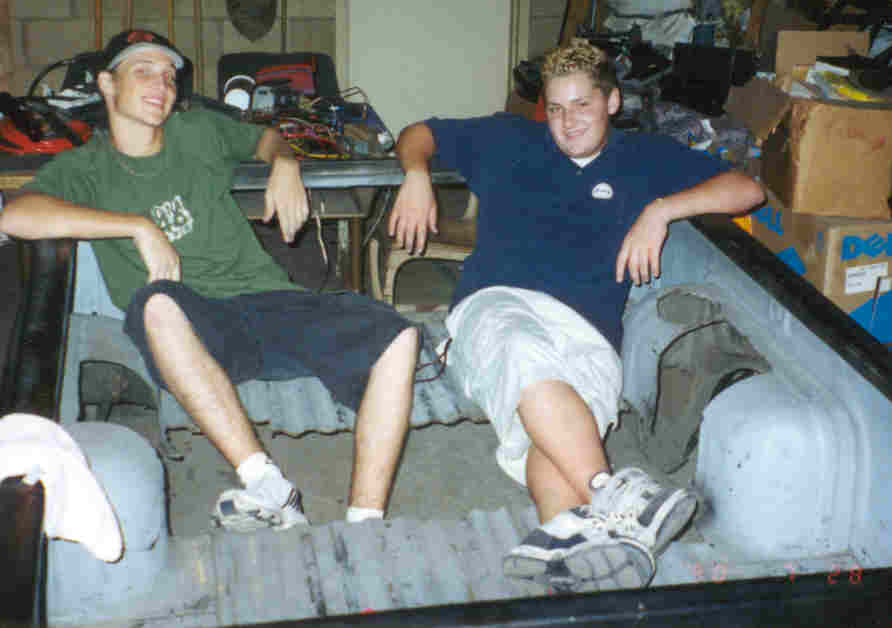 shaved doors, trailor tails, shave tailgate, molded tail gate, 4x4 front fenders, one piece shaves stock bumper, shaved gas filler, antenna, squierters, some one stole the mirrors,