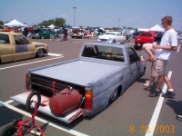 Frenched and tilted tag box in front bumper, cut hood for motor to stick through, complete sheetmetal bedfloor, 6 INCH Bodydrop
