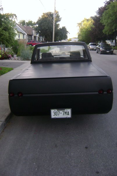 mostly shaved, '89 chev fullsize bumper and valance, some old car mirrors,chrome fender trim, '59 caddy tails