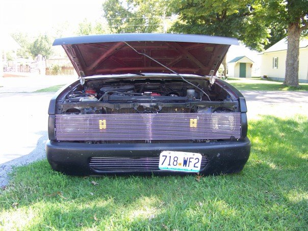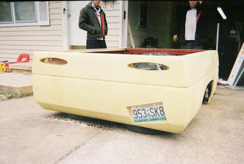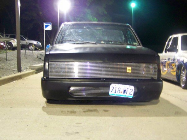 freshly sprayed black primer,shaved doors, wiper cowl, clear corners, fenders been cut down for shaved toyota front bumper with a crooked plate and billet piece, gas tank door, full skin with flamed tail lights, crooked plate, new chrome mirors
