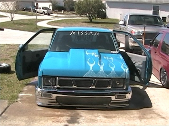 full shave suicide doors unibodied porshe turqoise blue w/ skulls , flames and graphics
