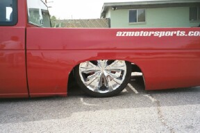 AIM (crap) Spindles, Air Bags , Toyota 5lug all the way around Finally got the 4 link in, still waiting on the torsion bar bag mounts. All air shit is relocated. it is coming along slowly