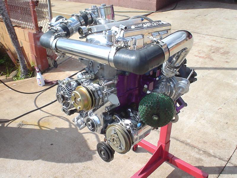 Bored over NAPZ 24 block 40 over.block painted same color as truck. ARP Head & Main studs. balanced and blue printed block. 8.5.1 J.E. Pistons. Total Seal piston rings.Pauter Machine Rods Copper Head Gaskets by SCE.O-ringed cyl. head. Port & Polished cylinder head. Competitions Mild Cam 260 Duration. T3 turbonetics Turbo with polished compressor housing. H.K.S. air filter. Polished stainless steel turbo piping. Vortech blow-off valve. Modified FBI intakes for turbo use. Nissan Bluebird Turbo Exhaust Manifold from 82 Nissan Blue Bird. 15 gallon Summit Racing Fuel Cell. Paxton external fuel pump. -8AN stainless steel braided fuel line. SARD Fuel pressure regulator. (4)24 lb. MSD Injectors . Custom fuel rail for auxilary injectors. Dual MSD 6AL Ignition & Blaster SS coils. MSD Boost timing retard controller. S.D.S. extra fuel injector controller. Greddy Profec Boost Controller. Greddy Turbo Timer. Autometer 5" monster tach with mini shift light. EGT, Boost, Air/Fuel, Volt Meter guages. Mechanical MAN 200 amp polished housing alternator. Greddy aluminum catch can. Chrome coolant overflow can. Hyper Ground System ground wires. Optima Yellow Top battery. Flex-Lite electric fan with chrome shroud. Polished master cylinder & clutch master. Polished Nissan turbo valvecover. Polished intake manifold. Assorted polished or chrome accesories/parts found throughtout the engine bay
