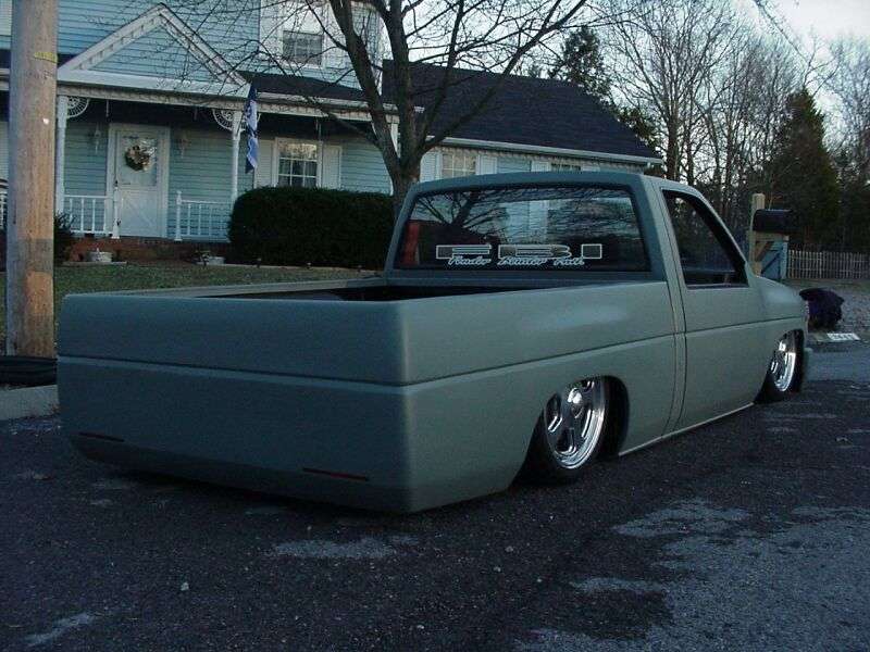 completely shaved and smoothed from front to rear. Toyota bumper and valance. Suicide doors.