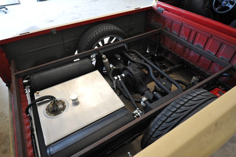 Fully custom built chassis by Jimmy's Rod and Custom, front sway bar, sleved bags in the rear