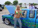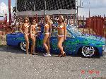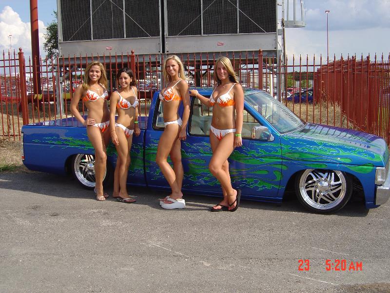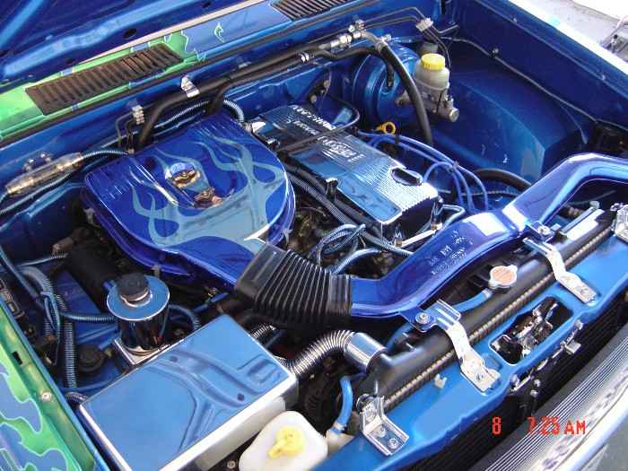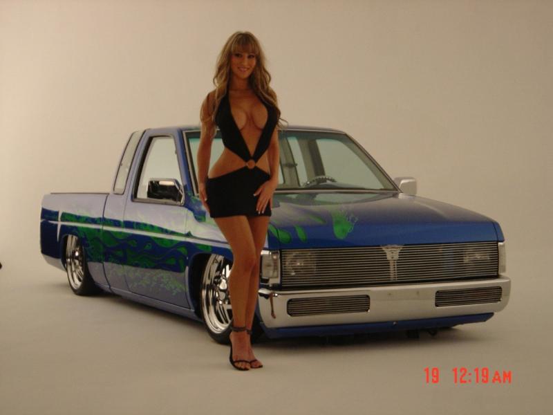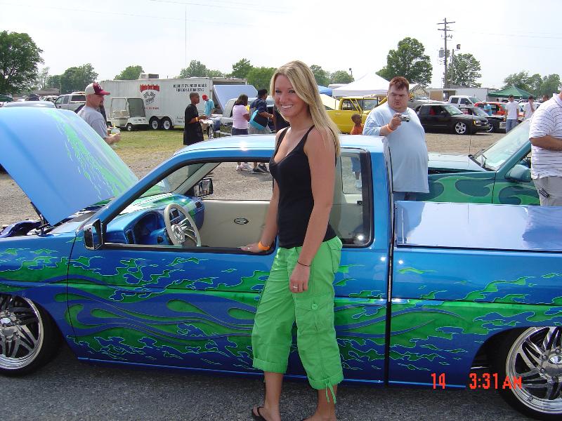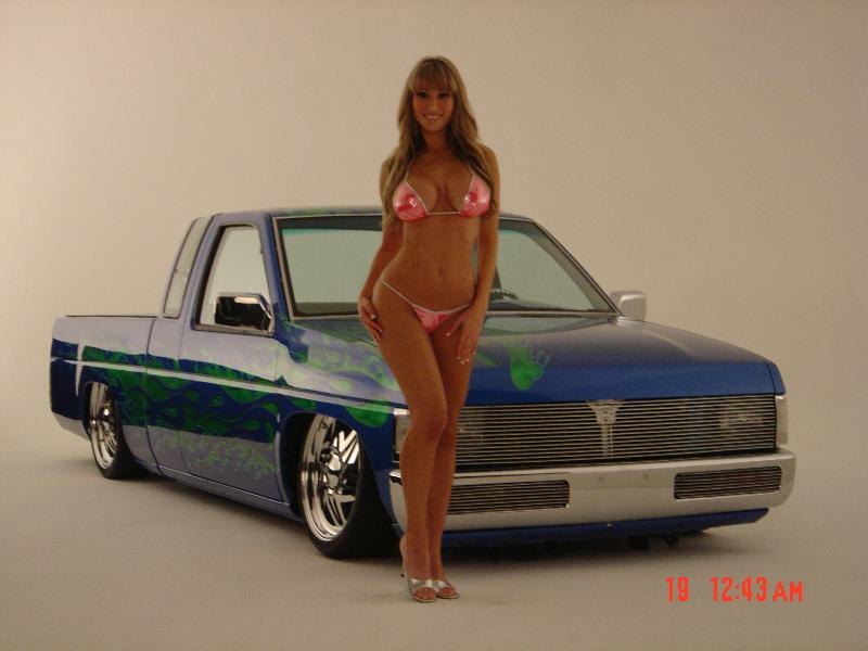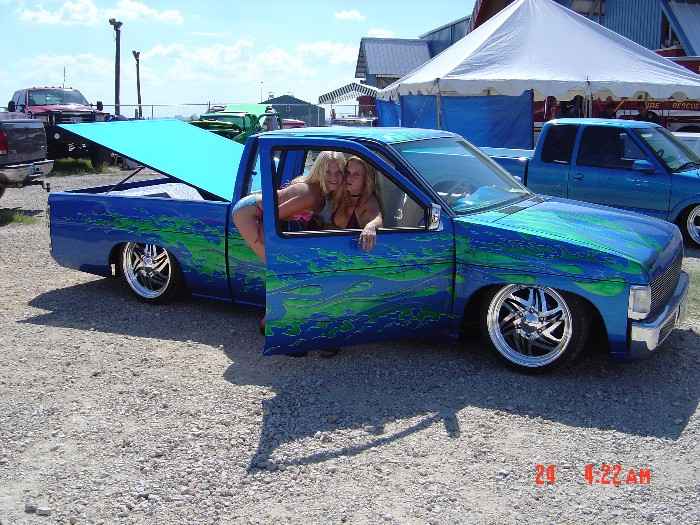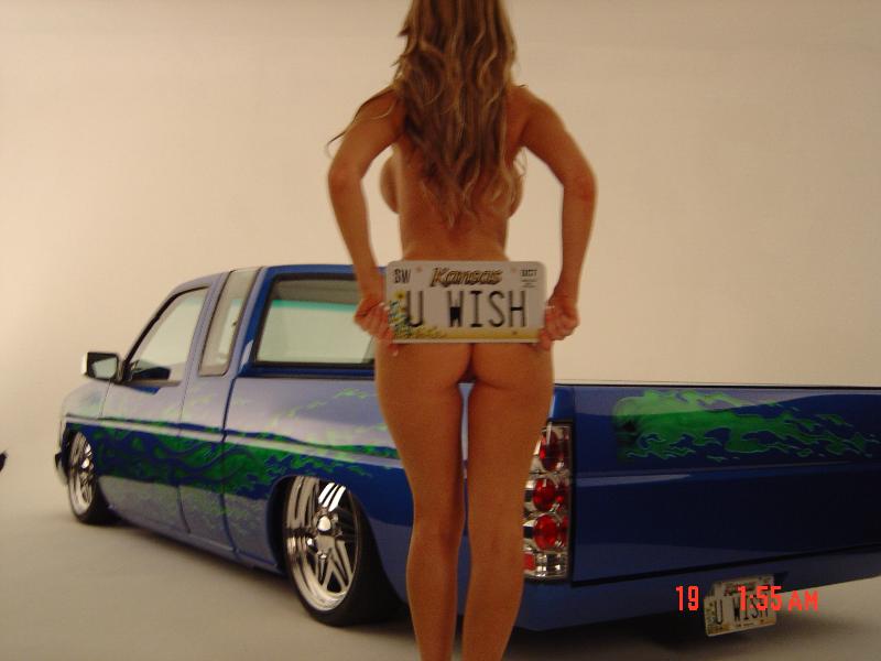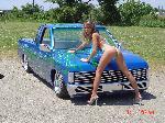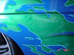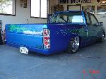 Shaved handles, 3rd brake light, emblems, antenna, roll pan. Graphics done by Charles Armstrong. All body work, base color, and buffing done by owner.