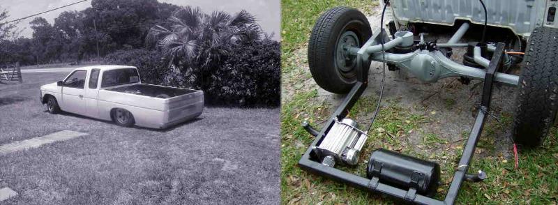 have 4 slam bags 8 1/2 valves big ass blojacks comp.2-3 gal. tanks.the hole back of frame was mad from 2x3 box tubbing, by Brit Coxs.4-link,full cell mad by dens fab.