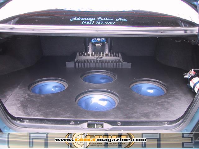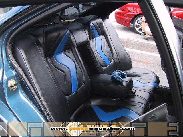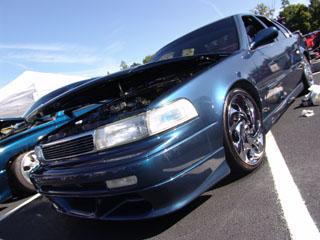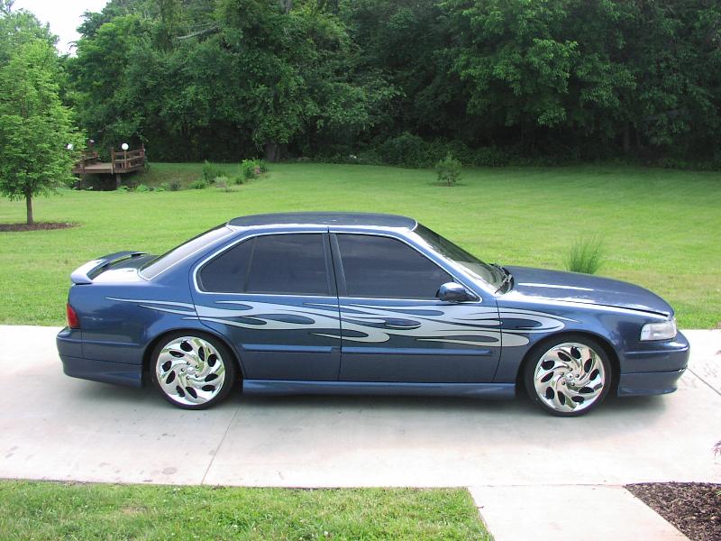 completely shaved, stillen body kit, custom made front lip, billet grill, clear corners, custom mixed blue paint with 9 pearls. 5% and 5 over 5% window tint with a 12" black vynal strip in front