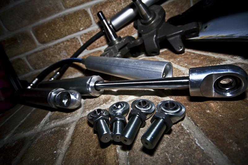 full frame with custom arms and custom 4 link. ballistic fab rod ends, heims on the control arms and ball joints from cando. mustang ii rack
