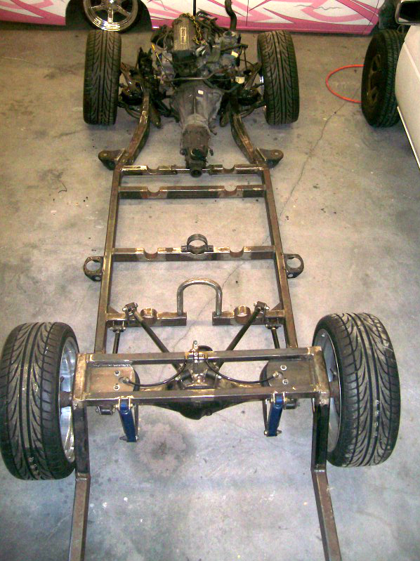 SFBD frame, Yota hubs, rotors and rearend. 2x3 from firewall back using Nissan D21 front clip. Slam specialties, Air Zenith and old school MIC 3/8s manual valves (ole reliable!)