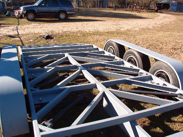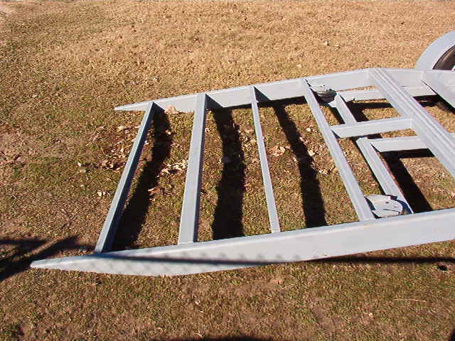 40 foot deck gooseneck trailer that lays flat on the ground with a hinged dove tail so no ramps will be needed