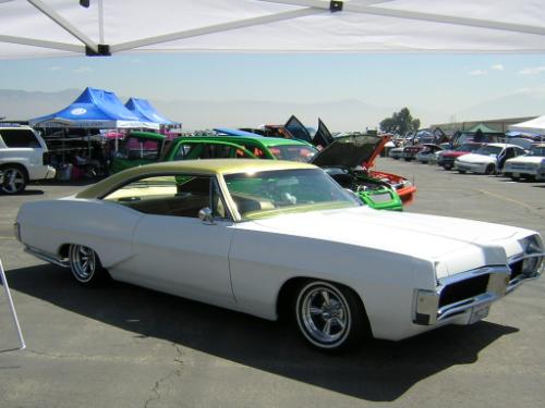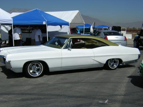 Suede White, Gold jumbo metal flake roof, shaved handles, moldings, emblems, trunk.