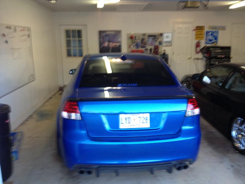 Clear blinker lights, smoked rear reflectors, tint, painted calipers, 6000k HIDs, G8 GXP rear diffuser, Sharkfin antenna, plasti dipped grills, LED fogs, red v6 G8-style LED tails