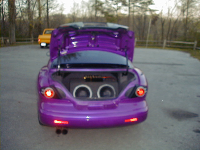 house of color passion pearl, with euro taillights with a borla catback exhaust, and purple streetglow kit