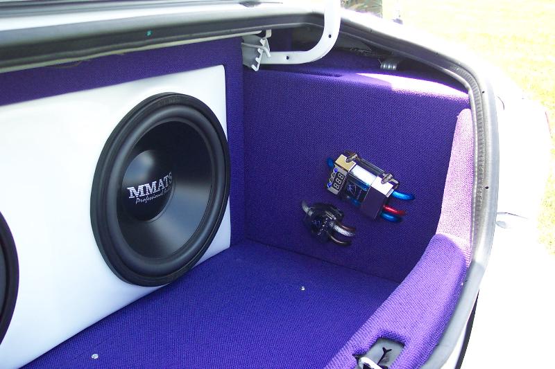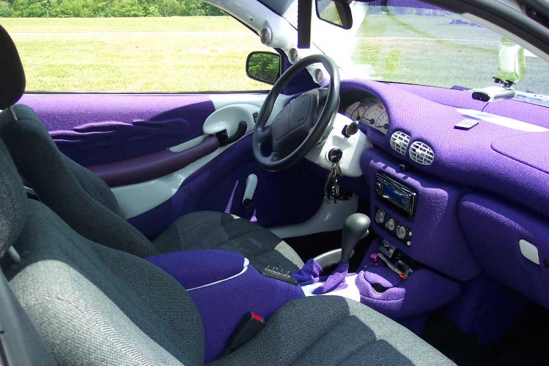 white face gauges, custom purple tweed accented interior, white painted accents, polished aluminum and carbon fiber pedals, custom audio video system,custom made switch panel in center console(for neons,amp,etc), Chrome fire extinguisher in drivers side rear window