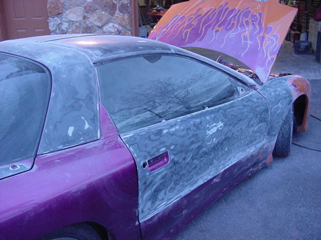 HOK paint- (House Of Kolor) Kandy Purple w/ Sunset tangerine Pearl Orange flames pinstriped in Orion Silver, Custom made Clear tail lights