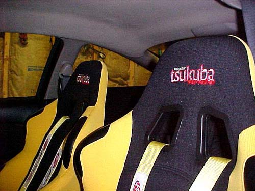 Tsukuba Pro Series Seats, Weapon r 4point harnesses, APEXi S-AFCII Controller, Defi VSD Concept Heads Up Display w/ egt and oil pressure, Defi Boost Gauge, Momo Shifter!