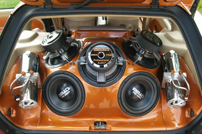 fiberglass sub floor, 4 12 inch kicker comps., alpine mrv1505 on bass, and a alpine mrvf405 on hishs and mids, boston pros, and a alpine head unit