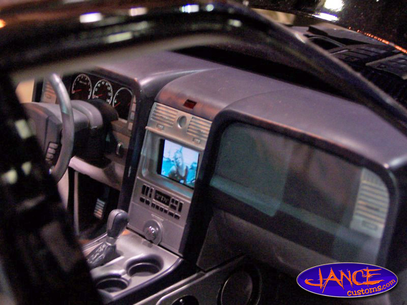 Complete color change. Painted the headliner and all the seats (two tone). Covered the floor in grey vinyl. Painted the lower dash, center console, door panels, shifter, rear view mirror, over head console, tv monitors, amps, speaker enclosure accents and other small pieces silver. Detailed every button or knob on the dash, seat levers, steering wheel, pedals and headliner.