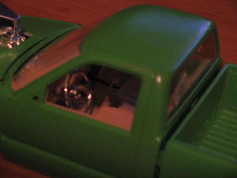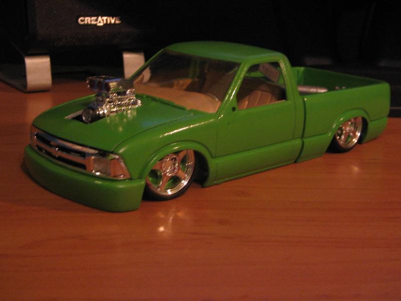 hot rod green..shaved taillights,doors,CUSTOM "BONDO" rollpan, 3rd brake light,CUSTOM front bumper,gas door ..uhh thats all i think