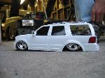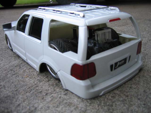Paint I Red/Black 2 tone with white stars on the transition. Put some Flint in the back bumper so when Im dragin the body it sparks.