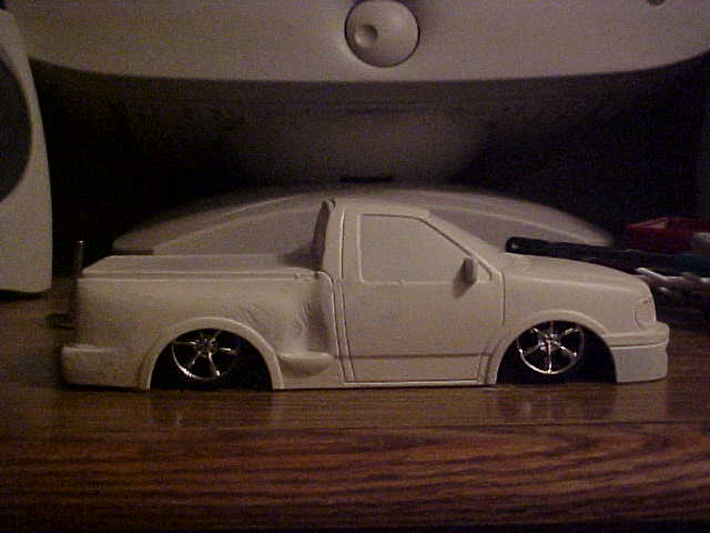shaved tailgate, tail lights, doorhandles, roll pan, bed shaved shut. drags door