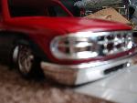 96 explorer front clip, shaved door handles, bodyline, gas door. moulded skin and shaved tails. chrome explorer bumper, explorer hood, painted in a "black widow" theme, but will be changing to red and silver two tone
