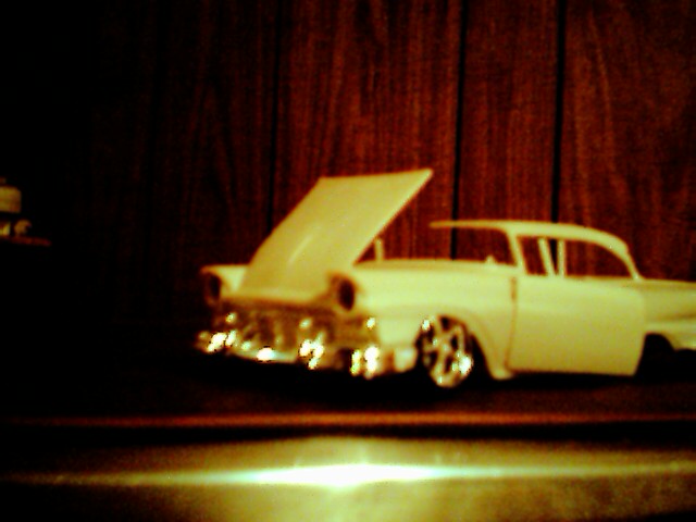 shaved all chrome on the body....choptop frenched head and tailights (custom tails)opening doors...(hood opens stock that way) rollpan..(yes a rollpan on a car) gunna be dark metalflake purple...and maybe some neongreen flames
