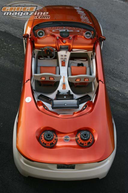 Fiberglassed rear housing inverted (2) M3 Memphis Car Audio subs ,(5) Memphis Car Audio amps and (2)cap’s to keep up the power.