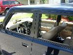 Leather kit, dyed door panels and dash, molded tft/lcd 7" screen in dash, base/clear pillars, tweed headliner, FATMAT sound-deadening, Billet SPecialties steering wheel wrapped in faux ostrich, custom automatic billet shift knob