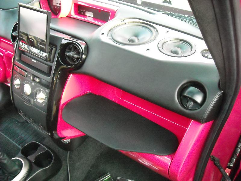 Painted lower dash, Custom upper dash with JL Audio 3 way setup molded in, Full custom door panels with pained inserts,Leather wrapped seats, Everything windows down is ultraleather, everything windows up is suede.