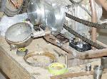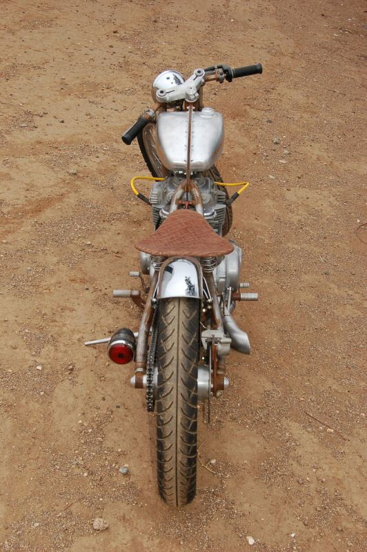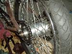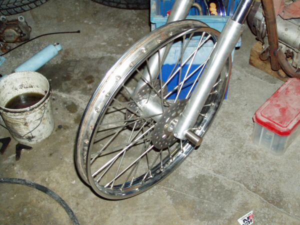 21" x 1.4" front rim (hard to find) on a custom hub to use dual 5" quad rotors. 19" x 1.8" rear rim (started life as a front) on a custom hub.