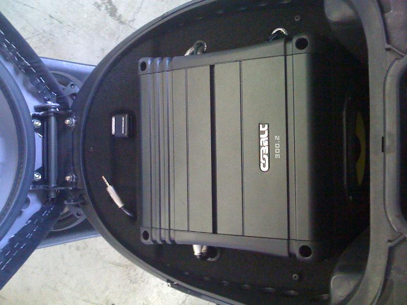 2-6" mids with a 8" sub pushed by and orian amp, Ipod hook up with remote.