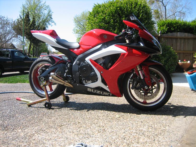 Took off the stickers and the damn mud flap that holds the licence plate! Added Shogun no cut sliders. Painted fenders and side tank pieces.
