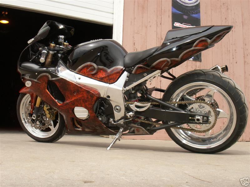 240 WIDE TIRE KIT.... CUSTOM SWINGARM BY TRAC DYNAMICS WITH TWIN LOOPS, PAIR VALVE MOD, ST MACHINE CUSTOM LEVERS, ST MACHINE CUSTOME HEEL GUARDS , EXOTIC CYCLES BLOCK OFFS , DIAMOND BILLET KICKSTAND , GALFER WAVE ROTOR , PROTECK GAS CAP , AFTERMARKET ENDURANCE UPPER FAIRING, POLISHED FRAME AND SUBFRAME , ORANGE NEON LIGHTS , STEEL BRAIDED LINES , EURO UNDERTAIL WITH GSXR LOGO LIGHTS, FLUSH MOUNT SIGS, VORTEX ENGINE COVER , RK GXW RACE CHAIN, VELOCITY STACK MOD, POWER COMANDER WITH CUSTOM MAP, FLOWED HEAD , DYNO TUNED , CARBON FIBER TRIPPLE TREE COVER , YOSHIMURA TRS SYSTEM , BRAIDED STAINLESS BRAKE LINES