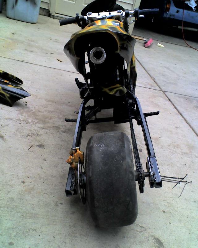 front and rear Firestone sleeve bags, 2 paintball gun air tanks, custom rear stretched swingarm
